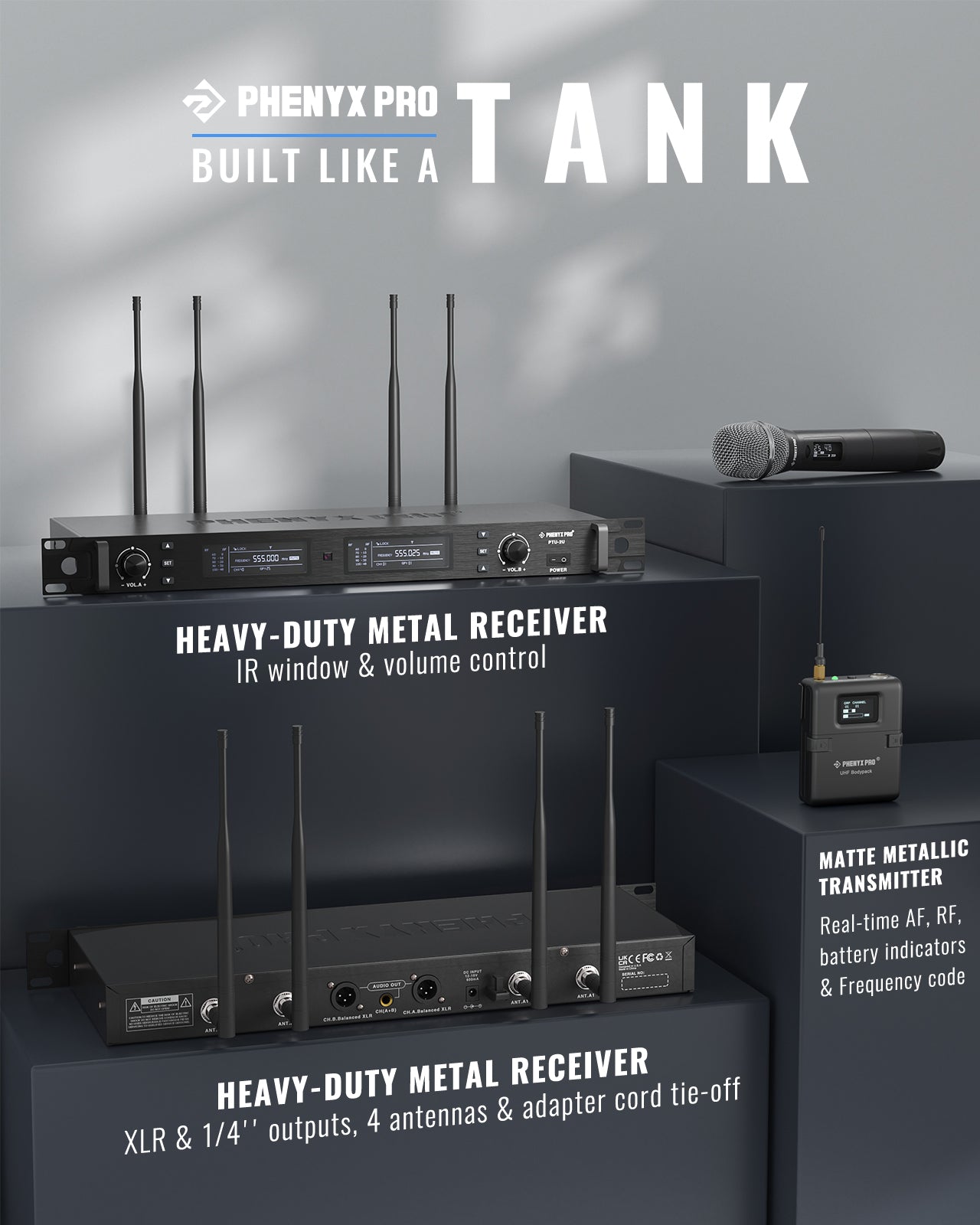 El Phenyx Pro PTU-2U integra detalles y funciones prácticos del sistema para un rendimiento relajante e impresionante. Gracias al circuito de diversidad real y a una gran cantidad de funciones bajo un mismo techo, el conjunto de micrófonos inalámbricos permite que el sonido prístino a nivel de estudio impregne ininterrumpidamente cada rincón del escenario mediano a grande. Su poder perceptible ofrece una experiencia definitiva para los profesionales y entusiastas de la música en cada momento importante.